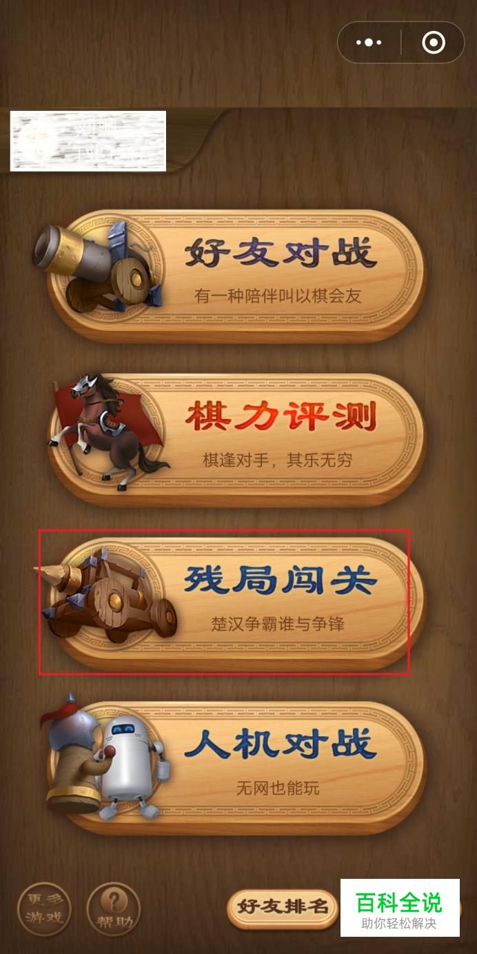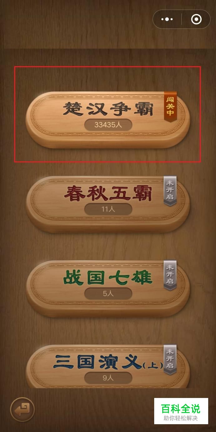 首先打开微信腾讯中国象棋——残局闯关——楚汉争霸——第15关钜鹿之战,如图所示