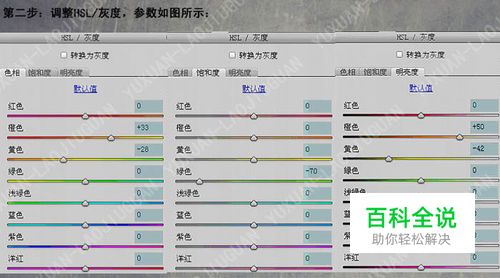 1、先在Camera RAW里面对图片进行基本调整,具体参数设置如下图。 2、调整HSL/灰度,参数设置如下图。