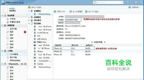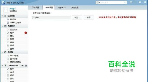 1、打开PP助手,接上4S,点击左边栏的”工具箱"-"shsh管理“再点右边你的手机名称,点击获取SHSH 如上图,如果你已经成功得到5.0.1的SHSH,那么恭喜你,下面的降级会一番风顺,如果没有得到,那悲剧了,以后勤快一些,经常打开PP助手,或者小红伞之类可以备SHSH的软件备备SHSH,在苹果还没有下手封掉备之前的SHSH之前 备的SHSH可以在PP助手右上解的设置,SHSH目录里查看存放路径,我的是保存在C盘的SHSH目录,命名为你的设备的ecid+固件号+.shsh,还是非常好辨认出来,PP助手备出来的shsh是支持各种固件工具的,如ifath 我的在C盘:很好找到,记住哦,后面要用到的