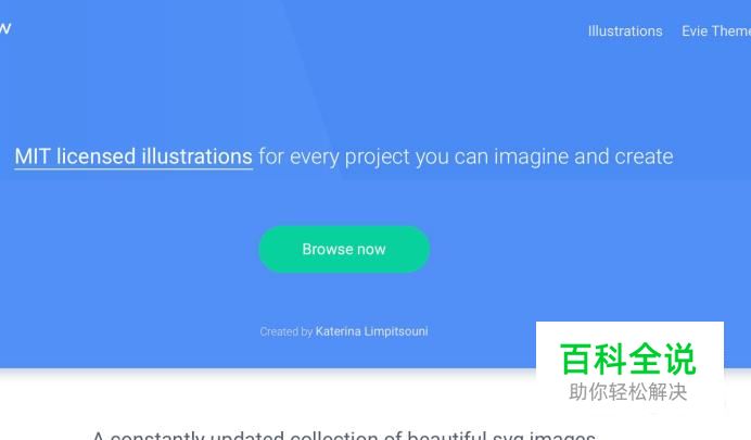 进入undraw官方之后,我们能够看到页面都是英文的,如果浏览器没有内置翻译的话,就凑合用吧,点击“brows now“进入。