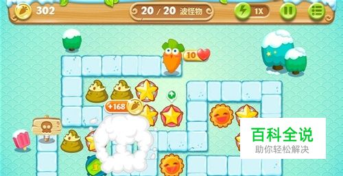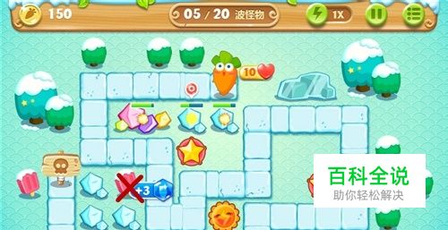 因为这关的炮塔是随机的,所以攻略仅供参考 如图布置,太阳清理道具 5波的配置,让上面的星星清理道具,清理完上方的道具,清理左下红叉的红冰棍 10波配置,这个搭配其实有点险 恐怖的15波,一定要善用暂停添加并升级炮塔, 最后一波配置