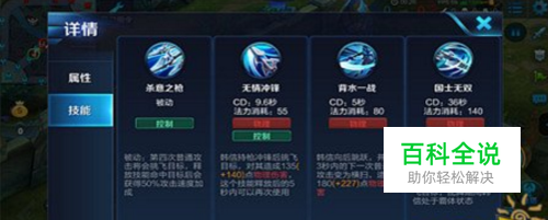 技能解析 被动技能:杀意之枪 解析:第四次普攻会挑飞敌人,这是一个控制技能,给予了韩信超强的粘人能力和打断能力,并且技能命中目标会增加50%的攻速,会使得普攻更加地迅速,也能更快地打出挑飞效果。