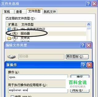 在“我的电脑”中,有时候你会遇到这样的情况,双击硬盘分区的盘符,根本无法打开,而只能先运行“资源管理器”再去打开硬盘分区。其实,这是因为你中了Autorun病毒造成的。有些杀毒软件即使查杀了Autorun病毒,也会引起双击分区打不开的“后遗症”。如何治疗这个顽症呢?试试下面的方法吧。 1.删除文件 打开“我的电脑”,依次单击“工具→文件夹选项→查看”,选中“显示所有文件和文件夹”后“确定”,然后用“资源管理器”打开各个分区,若发现各分区根目录下有autorun.inf隐藏文件,删除它们并重启电脑。 2.重新设置打开方式 同样打开“我的电脑”,依次单击“工具→文件夹选项→文件类型”,找到“驱动器”并选中,然后单击“高级”按钮,弹出“编辑文件类型”窗口,再单击“新建”,如图,在操作里输入“open”,在“用于执行操作的应用程序”里输入“explorer.exe”,点“确定”后返回到“编辑文件类型”窗口,选中“open”且单击“设为默认值”,最后单击“确定”,重新启动电脑试试看。 3.修改注册表法 打开注册表编辑器,定位至“HKEY_CLASSES_ROOTDriveshell”分支,将其下的键值全部删除,保存后退出注册表编辑器。