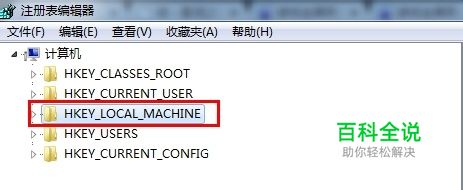 在运行窗口里面输入“regedit”,并且点确定进入注册表界面。并且找到HKEY_LOCAL_MACHINE;