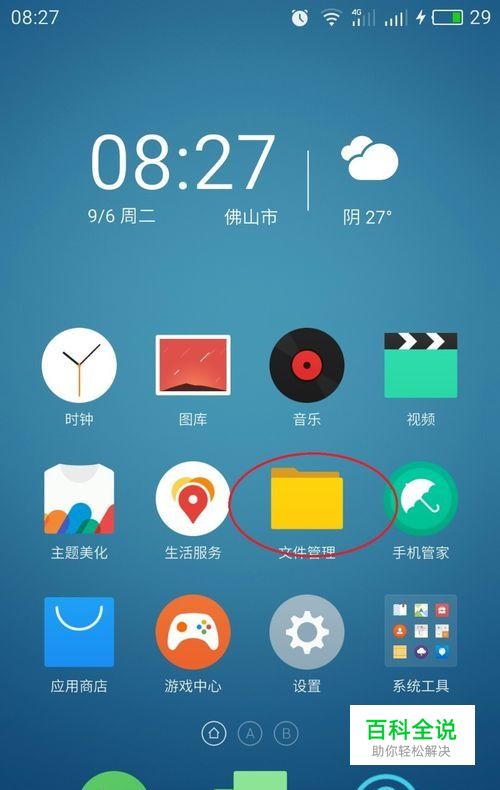 第一步: 在手机桌面上找到文件管理这个文件夹。点击打开。