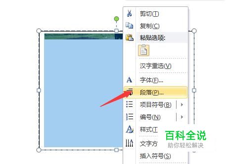 此时我们可以ctrl+a,选中所有的文本框中的图片文字,然后右击,选择段落。