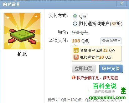 无限扩地是需要购买扩地道具的。购买无限制扩地,点击立即扩地就可以了。