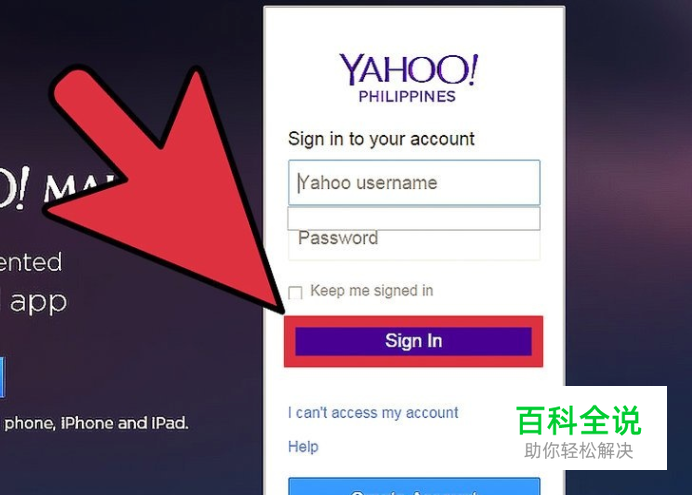 登入你的雅虎邮箱。输入你的用户名和密码。这会打开雅虎的主页。