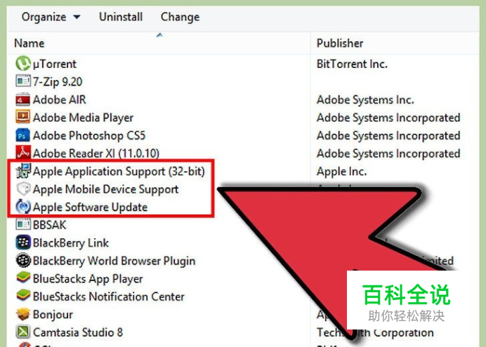 卸载所有iTunes的下载文件。你会看到一系列按字母排序的程序列表,右键点击,选择卸载即可。要正确卸载iTunes,你需要按照下列顺序卸载才行:iTunes,quicktime,苹果软件更新,苹果移动支持,bonjour,苹果应用支持(版本9或更新版本)