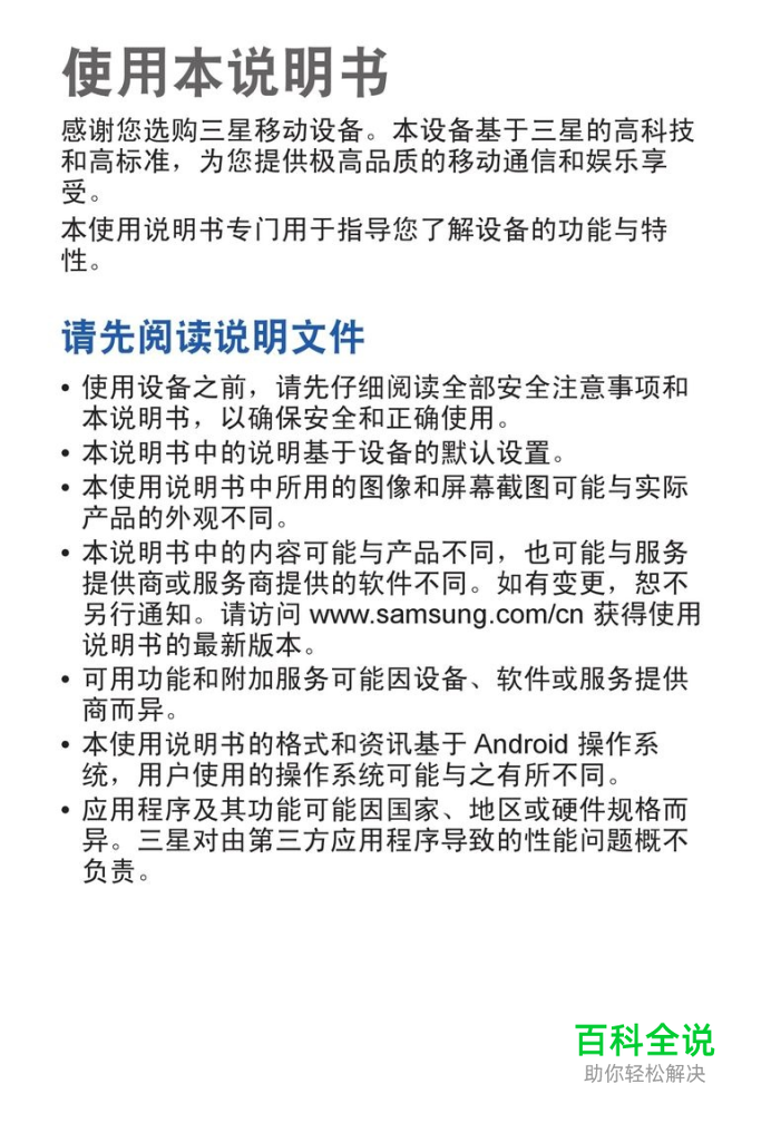 本篇为《三星GT-S7500手机使用说明书》,主要介绍该产品的使用方法以及常见故障解决方案。