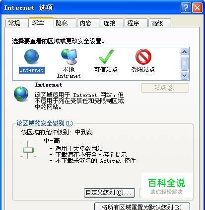 3、如果IE的安全级别太高,也会有脚本错误的提示,进入IE工具-internet选项-“安全设置”选“默认级别”。如下图:
