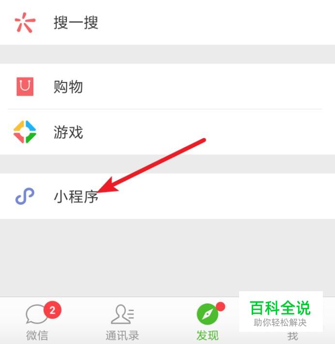 打开微信,在‘发现’页面,点击‘小程序’