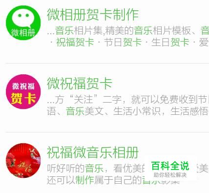 在公众号搜索“微祝福贺卡音乐相册制作”,在显示的结果中选择一个喜欢的关注
