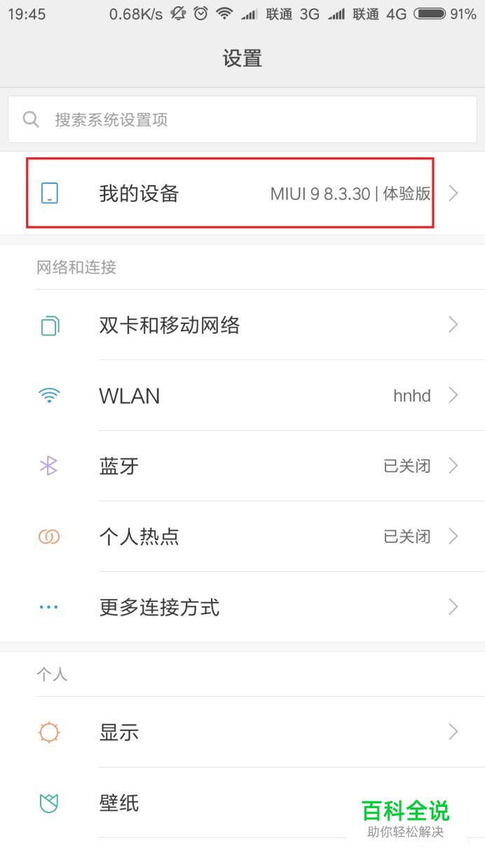 首先,打开MIUI系统中的设置应用图标,进入设置页面之后,点击页面顶部“我的设备”菜单。