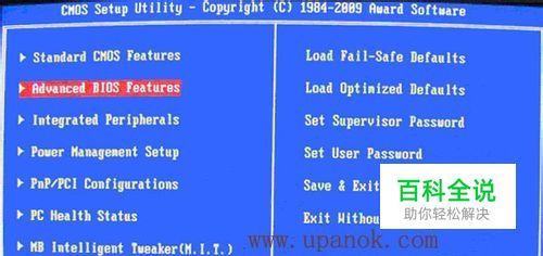 选择 Advanced BIOS Features 选项,按Enter键进入设置程序。选择First Boot Device 选项,然后按键盘上的Page Up或Page Down 键将该项设置为CD-ROM,这样就可以把系统改为光盘启动。