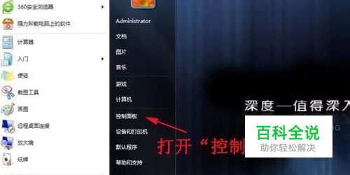 点击“开始”按钮,打开“控制面板”