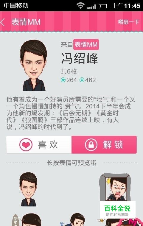 打开表情MM,找到冯绍峰表情包。并解锁。