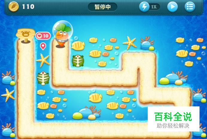 然后就要不断地清理道具。用清理道具所获得的金币来买鱼刺,也要买一个雪花炮塔,用来冰冻速度快的小怪。