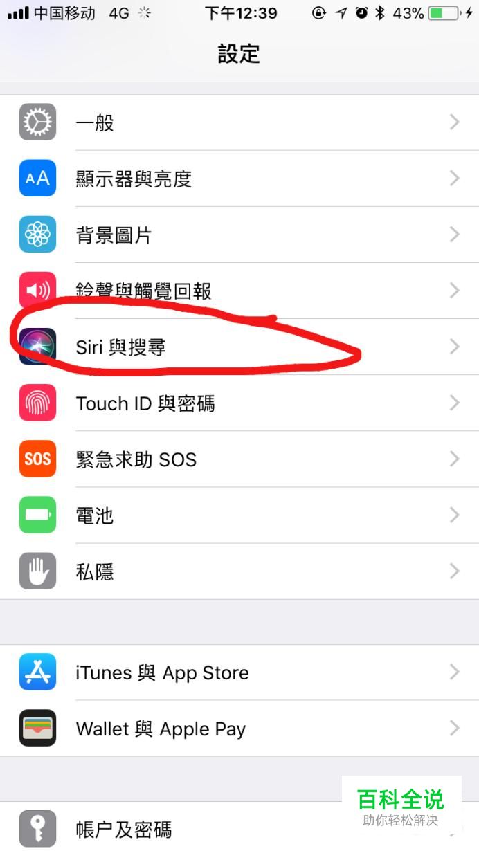 然后选择siri与搜寻,点进去