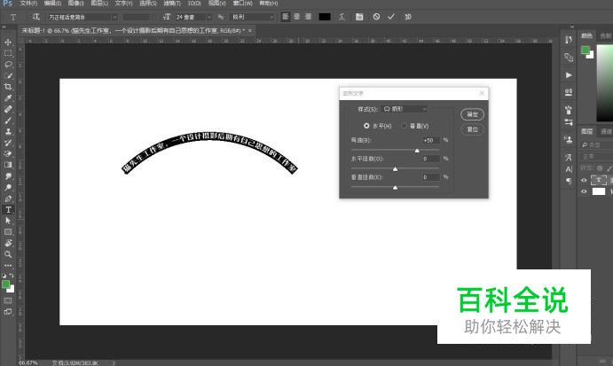 直接新建一个画布,输入你想要的文字,然后使用文字变形,选择你喜欢的样式,这里的变形就相当于word里的艺术字