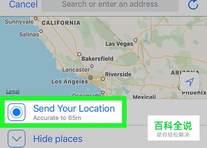 轻触 发送你的位置按钮。它位于屏幕上方的地图下面。接着,WhatsApp就会给对方发送一个地图,地图里面有一个红色大头针标记你当前的位置。收件人可以点击屏幕左下角的“共享”箭头,然后选择在地图中打开来查看定位和路线。 你可能需要先轻触允许按钮,允许WhatsApp程序访问你的定位设置。