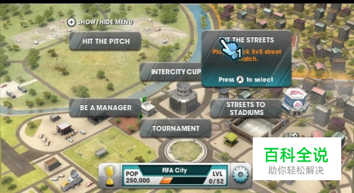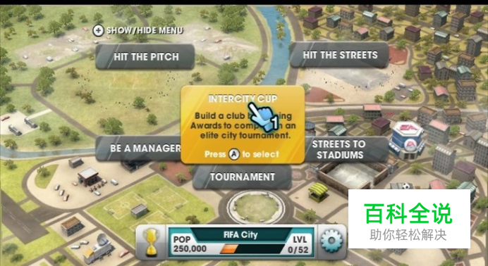 选择模式。打开FIFA以后,可以选择多种模式。若只想快速开始游戏,就点击“快速比赛”,然后就可以在快速设置好的标准模式游戏中,选择队伍和对手进行对战。其他选项包括: 城际杯赛:这种模式可以以一支队伍挑战锦标赛,赢得各种奖励。 街赛:5对5的街头足球赛。 生涯模式:从创建一个球员开始,慢慢发展职业生涯,培养他的能力。 经理模式:这种模式中可以管理整支队伍,进行队员交易和训练等。 锦标赛:可以选择各种锦标赛来考验你的能力。