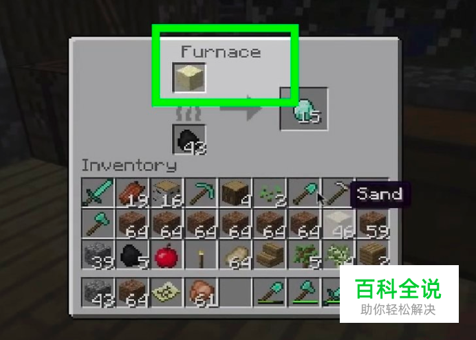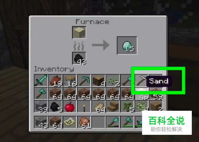 将沙子放在熔炉中。(在经典版以外的版本都有熔炉)右键打开熔炼选项。