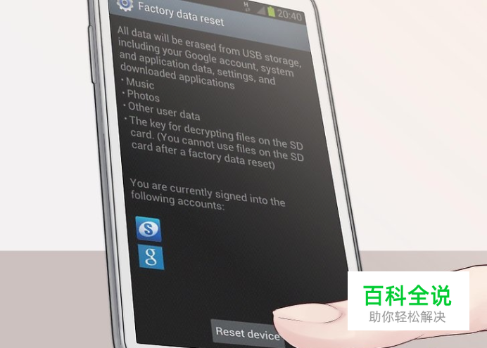 再点击“设备重置”。 如果你的手机上设置了锁屏,那么在继续下一步前,你可能需要输入锁屏密码或PIN密码。