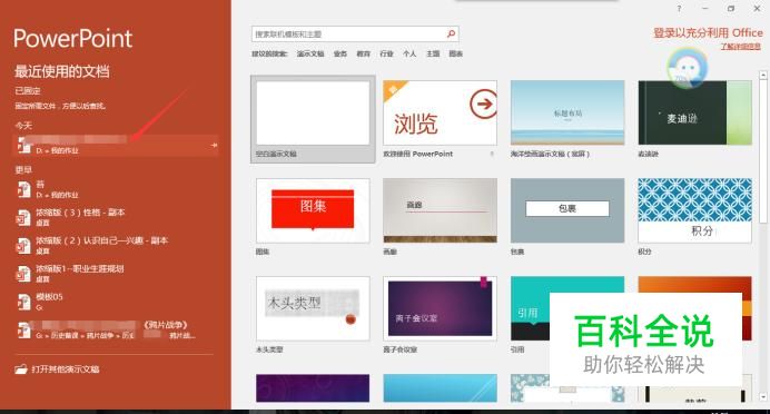 首先打开PowerPoint,在PowerPoint中找到要打开的文档(如图),然后点击。