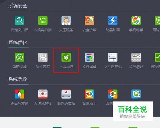在【系统优化】中单击【上网加速】选项。