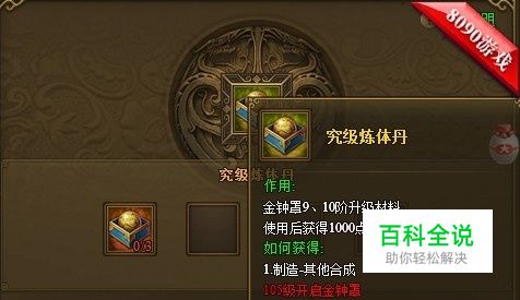 金钟罩的升级少不了究极炼体丹,那么如何才能获取它呢?首先,究极炼体丹合成需要三个终极炼体丹、合成的成功率是百分之百的,只是会需要消耗1W铜钱,合成之后可以用来升级9、10阶金钟罩,使用之后将会获得1000点金钟罩经验哟。