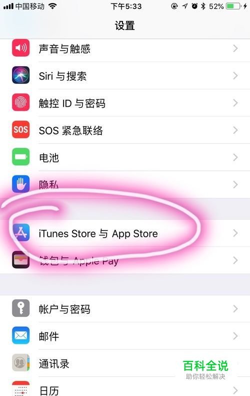 打开手机设置,点击进入“iTunes Store 与 App Store”