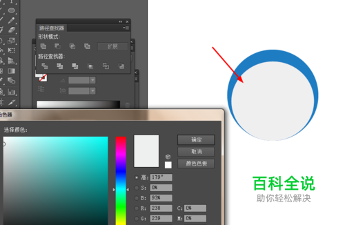 然后选中圆形,按ctrl+c复制,再按ctrl+f粘贴,把圆形顶端的一边向下移动,并填充颜色,如图所示