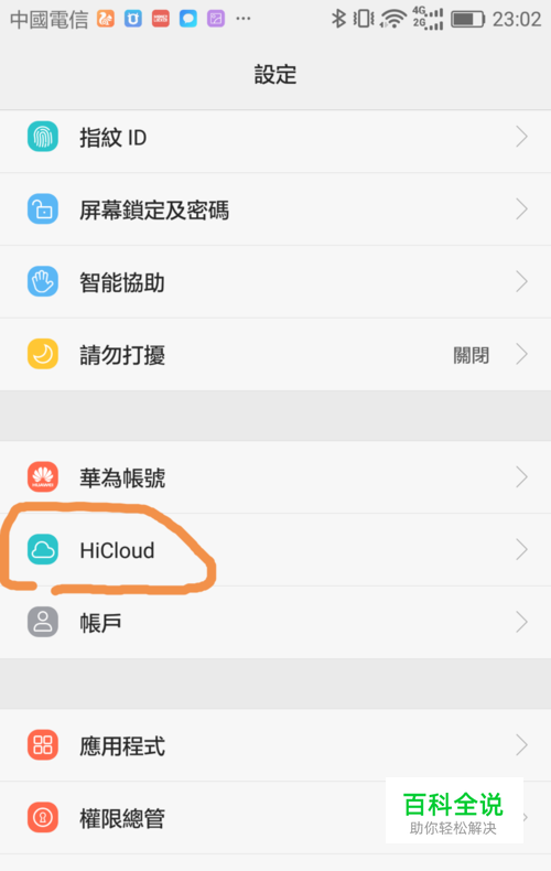 返回到”设置“界面,进入HiCloud页面 进入方法:设置 -》HiCloud