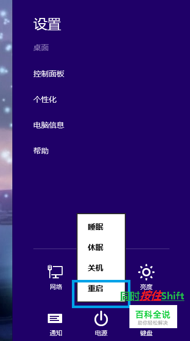 方法1.这个方法最简单,按win(windows微标键)+I,打开设置,这时按住键盘Shift键同时鼠标左键点击下方快捷按钮中的电源按钮,弹出选项,选择重启,之后系统会自动进入高级选项菜单;