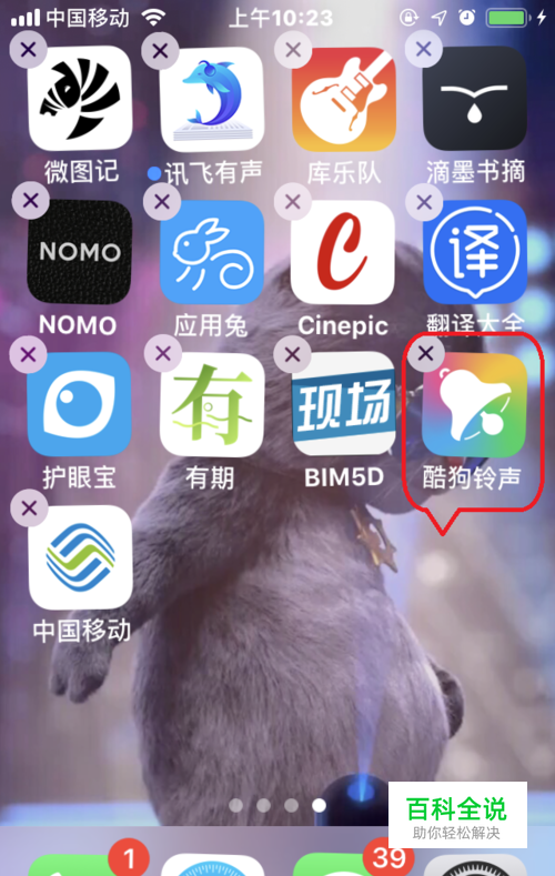 进入应用”自由移动“模式。 长按手机桌面某个应用,力度轻一点,使其闪烁晃动,左上角出现"X“符号。