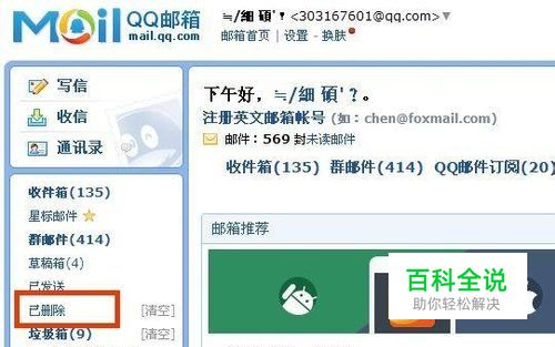 进入到qq邮箱以后,在邮箱的左侧点击已删除,如图所示: