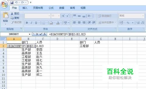 在查询列,输入公式=IFERROR(VLOOKUP($F$2&ROW(A1),A:C,3,0),"");首先利用row(A1)函数与原部门所在单元格组成一个部门序列,正好对应上述步骤中生成的部门编码,实现一对一查询,然后利用IFError函数,将查询不到的数据制定返回值为空(不确定有多少个人员)。