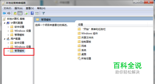 第二步点击确定,进去本地组策略编辑器之后,点击用户配置下面的管理模板,如下图所示:
