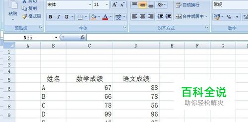 打开一个Excel的文件,输入一个简单的表格,比如学生的成绩表。需要查找语文和数学最低的成绩,如下图所示。