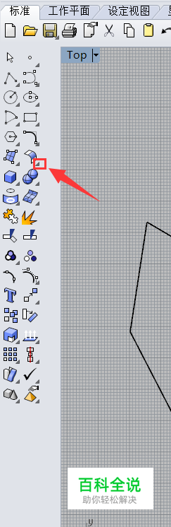 在标准栏的下方,找到我在图中红色箭头所指示的“曲面圆角”的图标,左键单击。