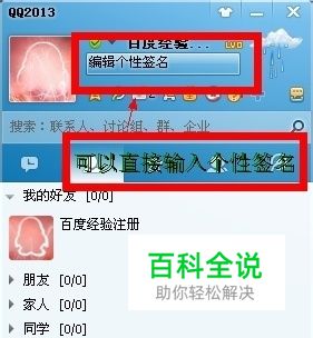 QQ面板上直接设置个性签名。如图,可以直接输入。