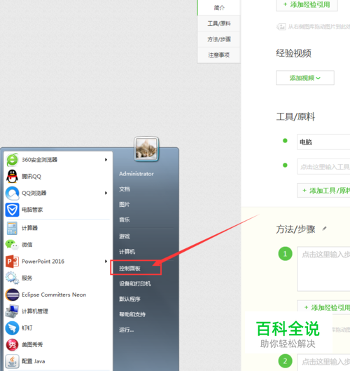 打开左边下面菜单栏,选择 控制面板