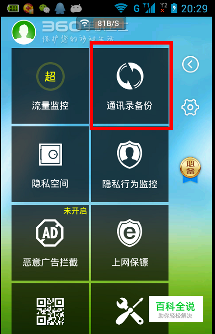安装成功以后,点击打开360手机卫士,在第二页有个通讯录备份,点击打开