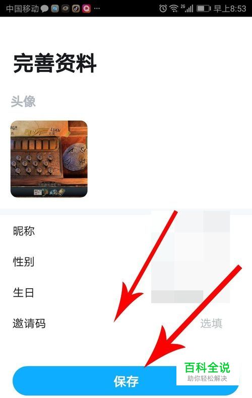 打开“完善资料”界面后,编辑头像、昵称和生日