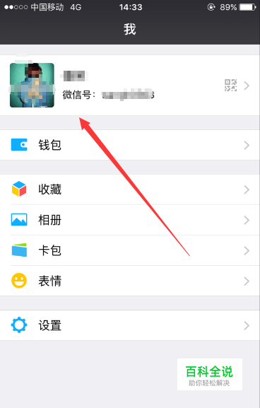 进入微信个人中心之后,微信的昵称或者头像,进入个人信息资料编辑,如图所示。