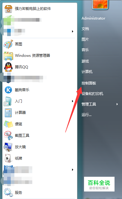 打开桌面左下角【开始菜单】,在右边列表中找到【控制面板】选项,点击进入。