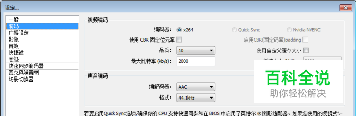 2、设置编码,视频品质10为最高,只录制语音的话选单声道mono。