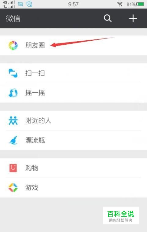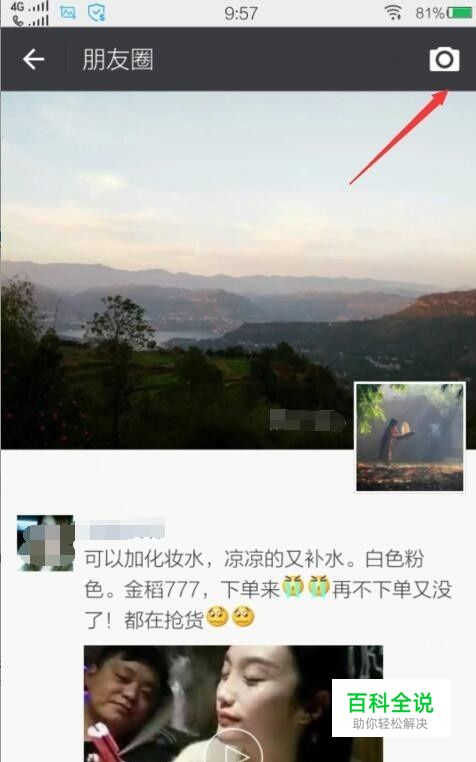 先来看一下照片的发布,打开朋友圈,点击在右上角的相机,选择照片,如图所示。