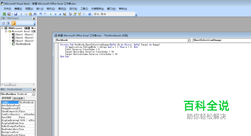 Alt+F11进入VB编辑器,双击左侧 Thisworkbook,进入编辑